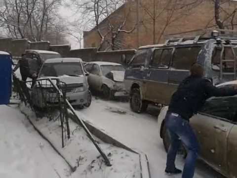 En alguna parte de Rusia (por la fuente del video): La nieve y el hielo se adueña de la calle...